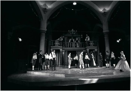 Right: Twelfth Night”, opening season of St George’s Elizabethan Theatre, 1976. Lynn Farleigh, Viola, standing behind her brother, Sebastian (me). I have eyes only for Sarah Badel (Olivia)